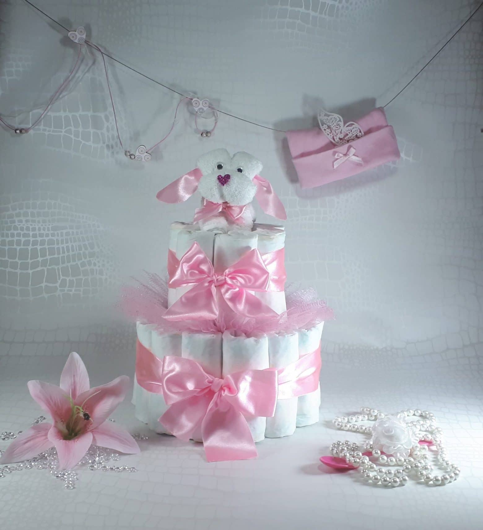 Letisztult, mégis bájos pelenkatorta, amely tökéletes választás babalátogatóba vagy ajándékként a legkisebbek érkezésére.